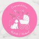 Bringen Sie den großen Bruder oder die Schwester Pelzbaby in die Feier mit diesem bezaubernden Goldendoodle Hund Baby Dusche Design! Ideal für einen kleinen Liebhaber, der unterwegs ein Baby hat. Das Golden Doodle liegt neben einem hübschen Vintagen Wagen. Das Rosa macht es perfekt für eine kleine Dusche!