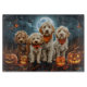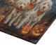 Entfesseln Sie den unheimlichen Geist mit diesem unheimlichen Halloween-Design, das eine Hundepackung unter einem dunklen, mondbeleuchteten Himmel bietet, umgeben von fliegenden Fledermäusen und glühenden Kürbissen. Ideal für diejenigen, die mit ihren wütenden Freunden eine Touch voller Furcht Liebe haben!