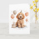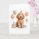 Niedliche Cartoon-Illustration von Goldendoodle Hund mit einem Geburtstagskuchen und Ballons. Ideal für Liebhaber von Haustieren oder Hundeeltern.