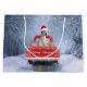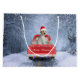 Ein Weihnachtswagen, der durch Schnee fährt und Weihnachtsgeschenke und Goldendoodle Hund liefert. Eine perfekte Weihnachtsgeschenkidee für jemanden, der diesen Hund züchtet.