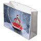 Goldendoodle Hund im Schnee sitzen in Weihnachten Große Geschenktüte