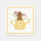 Cartoon-Abbildung eines Goldendoodles, das aus einem Wasserkocher mit Blume herausspringt. Ideal für Sommer und Frühling!