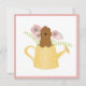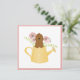 Cartoon-Abbildung eines Goldendoodles, das aus einem Wasserkocher mit Blume herausspringt. Ideal für Sommer und Frühling!