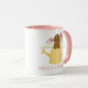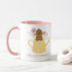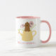 Cartoon-Abbildung eines Goldendoodles, das aus einem Wasserkocher mit Blume herausspringt. Ideal für Sommer und Frühling!