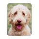 Naher Schuss eines goldendoodle lächelnd. Designer Hund, Golden Retriever und Poodle.