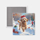 Goldendoodle läuft im Schnee mit Weihnachtshut Magnet