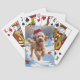 Goldendoodle läuft im Schnee mit Weihnachtshut Spielkarten