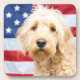 Goldendoodle mit amerikanischer Flagge Getränkeuntersetzer