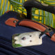 Goldendoodle Welpe Blick auf Kamera Gepäckanhänger