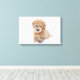 Goldendoodle-Welpe mit Schnee im Gesicht Leinwanddruck