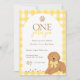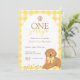 Goldendoodle Yellow Gingham First Birthday Einladung