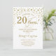Goldene 20-jährige Jubiläumsfeier Einladung Elegantes Design mit Imitaten Glitzer Goldfolie. Enthält Skript-Schriftart und Konfetti-Diamanten. Feiert bis 20 Jahre! Kann angepasst werden, um jedes Jahr der Ehe zu zeigen. Nachricht, wenn Sie weitere Anpassungen benötigen.