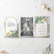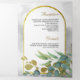 Goldene Arche Rustikale Eukalyptus-Blätter Foto Ho Dreifach Gefaltete Einladung