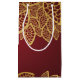 Goldene Blatspitze auf rotem Hintergrund Kleine Geschenktüte