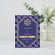 Goldene, blaue Schneeflocke und Rahmen Hochzeit personalisierte Save the Date Postkarte mit einem PRINTIERTEN Bild einer Goldschneeflocke mit Juwelen, einem marineblauen Rahmen mit goldener Kontur, einem Goldbanner und einem Muster mit Schneeflocken. Dieses moderne, elegante und stilvolle Template-Design ist vollkommen anpassbar und eignet sich perfekt für Weihnachtsfeiern im Winter.