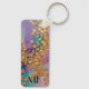 Goldene Blume auf rosa Lilac Türkis gestrichen Schlüsselanhänger