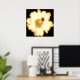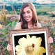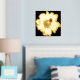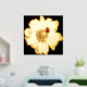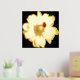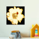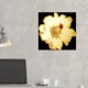 Eleganter Folienprint mit einer großen goldenen Blume, mit einem roten und schwarzen Ladybug, auf schwarzem Hintergrund. Schöner Druck für jeden Naturliebhaber.
