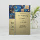 Ein ausgeklügeltes Design mit zarten goldenen Blumenzweigen Set vor einem reichen Mitternachtsblauen Hintergrund mit weichem Aqua-Marmor. Im oberen Bereich werden die vielschichtigen metallischen Blüten mit anmutigen Stielen verwoben, die einen eleganten Kontrast zu den tiefblauen Farbtönen schaffen. Unten zwei große, in dunkelblau gerahmte, goldbeige Wandtafeln bieten Platz für Text- oder Dekorationselemente und eignen sich somit perfekt für Einladungen, Zertifikate oder Luxusdesigns.