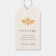 Elegantes naturinspiriertes Hochzeitsdesign mit einer Aquarellblütenillustrierung an der Spitze auf einem warmen Elfenbeinhintergrund. Mit drei bearbeitbaren Textfeldern versehen, mit einer Begrüßungsbotschaft versehen, machen diese Tags zum perfekten Finishing-Touch für Ihre Hochzeitsempfangstaschen.