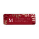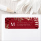 Ein elegantes Rückkehradressen-Label mit handgezeichneten Kiefernästen in einer festlichen Gold- und Rottöner-Weihnachtspalette, die von Stacey Meacham entworfen wurde.