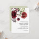 Rustikales und elegantes Bouquet mit Blume mit goldblühender Kontur, Bordeaux, Wein und blütigen Rose entlang der Spitze der Hochzeitseinladung. Zusätzlicher Text auf der Rückseite der Einladung für die Einzelheiten der Hochzeit. Übereinstimmende Elemente in dieser Auflistung.