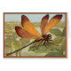 Die Vintage Libelle, die auf einem Blatt ruht, ist in Gold- und Brauntönen gehalten und im Hintergrund ist ein Sumpf mit Wasser und Limonen zu sehen.