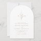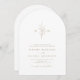 Minimalistische Imitate goldene und weiße Bogen Hochzeitseinladung, mit Ihren mit Monogramm Initialen und Hand illustrierte botanische Blätter oben, Ihre Veranstaltungsdetails sind unten in modernem Drehbuch und klassischem Schriftart dargestellt. Einfach und luxuriös. Ideal für moderne klassische Hochzeit, einfache formelle Hochzeit, elegante botanische Gartenhochzeit. Sehen Sie sich alle passenden Stücke in der Sammlung an.
