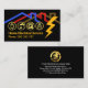 Die mehrfarbige Silhouette auf der Dachterrasse ist von einem gelben Blitz angetrieben. Oben ist eine Reihe von goldenen elektrischen Icons, die einige der Dienstleistungen, die Sie anbieten, darstellen können. Ihr renommierter Firmenname und Ihre Kontaktdaten befinden sich in der Nähe der Kartenbasis. Oben ist ein goldenes Zuhause-Power-Logo, das Sie verwenden können. Danach folgen Ihr Name, Ihre Kontaktdaten und ein Slogan, um Ihre Dienste bekannt zu machen. Ein großartiges Design für Elektriker. #electrician #electrical #electricalservices #electricaltrack #lighting #lighting #lighting #electricbulb #electricpower #electricalwire #plug