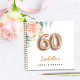 Für eine elegante und weibliche 60. Geburtstagsfeier. Ein schick weißer Hintergrund. Dekoriert mit einer Rose Gold und rot rosa Rose Blume, florale, grüne Eukalyptus Blätter, Sprigs, Grün und Imitat Goldsprigs. Personalisieren und einen Namen. Schwarze und goldene Buchstaben. Der Name ist mit einem modernen handgeschriebenen Stilskript geschrieben. Nummer 60 ist mit einem goldenen Schriftart im Ballonstil geschrieben. Kann als Gästebuch oder zur Planung des Party verwendet werden.