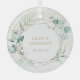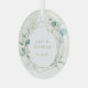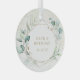 Modernes und elegantes Ornament mit Namen und Hochzeitstermin in einem Imitat goldene geometrische Rahmen umgeben von grünen Eukalyptus-Blätter und Grün mit einem Hauch von Blau, über einem pastellfarbenen Waschbecken mit Fesseln von Imitaten Gold Glitzer. Dieses rustikale botanische Ornament ist auch ein großartiges Geschenk für ein frisch vermähltes Paar zu Weihnachten.