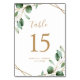 Diese individuell anpassbare Tischnummer Card ist für die Koordination mit unserer Moody Greenery Hochzeitskollektion konzipiert und bietet Blätter in Aquarellgrün mit Eukalyptus-, die mit einem goldenen geometrischen Rahmen versehen sind und mit einem stilvollen Drehbuch und einem klassischen Serif-Schriftart in Gold gepaart sind. Um erweiterte Änderungen vorzunehmen, klicken Sie unter Anpassen dieser Vorlage auf "Klicken Sie, um weitere Anpassungen vorzunehmen".