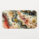 Ein abstraktes Gemälde mit goldenen Flüssen, die sich durch die Farben Weiß, Rot, Blau und Schwarz schlängeln. Die dynamischen Muster entstehen durch die Technik des Fluid Paintings.