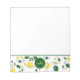Dieses lustige Fußball-Notizblock mit zufällig arrangierten grünen, goldenen und weißen Fußbällen unterschiedlicher Größe am unteren Rand mit leicht zu personalisierenden Namen & Monogramm auf einem koordinierenden grünen Kreissenanhänger plus Jersey-Nummer auf einem der Fußbälle - von katz_d_zynes