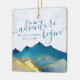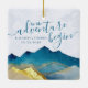 Lass das Abenteuer beginnen! Moderne Vintage, elegante Hochzeitsvorlage Save the Date Keramik - Blaues Grün und Imitate Gold Foil Wasserfarbengebirge Landschaft Landschaft. Diese Designs können für Ihren Besondere Anlass Personalisiert sein und wären perfekt für Ihre Hochzeit, Brautparty, Engagement Party, Geburtstagsparty und viele weitere Besondere Anlässe.