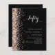 Für eine elegante 50. Geburtstagsfeier (oder jedes Alter). Ein klassischer schwarzer Hintergrund. Dekoriert mit Rose Gold Konfetti. Personalisieren und fügen Sie einen Namen und Party-Details hinzu. 1 Blatt = 1 Einladung mit Druckkante bis Kante.