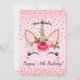 Goldene Glitzer & Rosa Blumenmusik Geburtstagspart Einladung