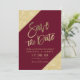 Goldtypografie auf dem farbigen Glitzer aus Marsala, Goldgold, und Imitate mit geometrischen Streifen Save the Date Hochzeit, perfekt für eine elegante, stilvolle Hochzeit.