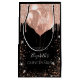 Eine Geschenktasche für eine glamouröse Quinceañera, 15. Geburtstagsfeier. Ein schwarzer Hintergrund mit Imitaten Glitzer Tropfen, Farbe tropfende Look und Ballons. Der Text: Der Name wird mit einem modernen handgeschriebenen Stilskript geschrieben. Personalisieren und fügen Sie Datum und Namen hinzu.