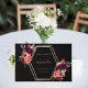 Ein stilvoller schwarzer Hintergrund, Rose goldener Folientext. Sie sind mit geometrischen Rahmen und Blumenarten in Bordeaux und Rosa dekoriert. Personalisieren Sie Ihren Namen, Ihr Alter und Ihr Datum und fügen Sie diese hinzu. Spine: Fügen Sie Ihren Text hinzu.