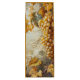 Weinbeutel im Herbst mit einer Aquarellillustrierung einer Weinrebe mit kaskadenförmigen goldenen Trauben und weißen Trauben, umgeben von herbstfallenden Blättern. Abbildung auf der Rückseite und vorne auf der Rückseite mit einem soliden Hintergrund in Farbe, um die Abbildung. Eine ideale Ergänzung für ein Weinflaschenherbergsgeschenk für Erntedank oder einen Urlaub im ganzen Jahr.