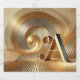 Dieses abstrakte Kunstwerk zeigt geschwungene, goldene Regenbogenformen, die sich harmonisch von einem zentralen Punkt aus erstrecken. Am unteren Rand steht ein prägnantes, stilisiertes goldenes "A", das die Komposition abrundet. Die weiche, neutrale Hintergrundfarbe verstärkt den luxuriösen Glanz der goldenen Elemente, während die sanfte Beleuchtung dem Bild eine strahlende Eleganz verleiht. Die moderne Gestaltung symbolisiert Raffinesse und zeitlose Schönheit.