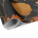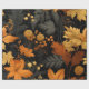Ein auffallendes herbstorientiertes Design mit fett-goldgelben und blassorangen Blätter Set vor schwarzem Hintergrund. Die komplizierten Details der Blätter, zusammen mit der subtilen Aufnahme von Beeren und Farnen, schaffen ein Gefühl von Wärme und Textur. Das dunkelgrüne und graue Blattwerk verleiht dem Ganzen Tiefe, die lebhaften Herbstfarben heben sich ab und verkörpert das Wesen der Herbstsaison mit Eleganz.
