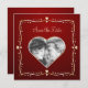 Personalisierte Ankündigung Datum freihalten mit goldenen Herzen auf dunkelrotem Hintergrund. Fügen Sie Ihr Foto hinzu und personalisieren Sie es mit Ihren eigenen Informationen oder klicken Sie auf "Anpassen", wenn Sie das Layout weiter bearbeiten möchten.