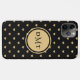 Dieses niedliche Handy-Gehäuse weist einen schwarzen Hintergrund mit einem goldenen Herz-Muster auf. Sie können es mit Ihrem Monogramm in einem schwarzen und goldenen Kreis personalisieren, indem Sie den Link "Personalisieren Sie diese Vorlage" verwenden.