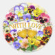Hübsche, farbenfrohe Stiefmütterchen mit freundlichen kleinen Gesichtern und einem goldenen Herz. Eine großartige Art, eine liebevolle Nachricht an jemanden zu senden, besonders, sicher zu schätzen.