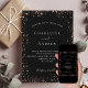 Ein schicker schwarzer Hintergrund, verziert mit Rose Gold Imitate Glitzer, Glitzern. Personalisieren Sie Ihre Namen und Details und fügen Sie diese hinzu.