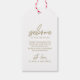 Diese skurrile kalligraphische Begrüßungstafeln sind perfekt für eine moderne Hochzeit. Das Design zeichnet sich durch elegante goldene Typografie aus und sorgt für einen schlichten minimalen Look. Personalisieren Sie die Tags mit dem Ort Ihrer Hochzeit, eine kurze Begrüßung, Ihre Namen und Hochzeitsdatum. Diese Tags sind ideal für Hochzeiten in Urlaubsort und Begrüßungstaschen für Hotelgäste.