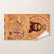 Jesus Christus im Goldmetall verziert mit roten Steinen. Halten eines Buches mit rotem Kreuz. Nahe hohe Fotografie.