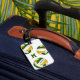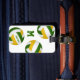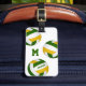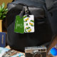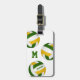 Dieser Beuteltaschen-Anhänger für Volleyball ist einfach mit drei zufällig angeordneten Volleybällen mit grünen, goldenen und weißen Paneelen - personalisieren Sie den Spielernamen und das Monogramm auf der Vorderseite, Adressdaten auf der Rückseite - von katz_d_zynes