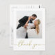 Dieses Design verfügt über eine moderne, einfache Goldkalligraphie-Schrift, ein minimalistisches Zwei-Foto-Paar, ein Hochzeitsfotografie-Paar, eine einfache, zeitgemäße Vorlage, einen eleganten Typografie-Script-Schriftart, eine Hochzeitskarte für Foto, ein maßgeschneidertes personalisiertes Design, einen goldenen handgeschriebenen Schriftart, ein kreatives, elegantes Drehbuch, ein kalligrafisches Hochzeitsfreundliches Hochzeitsbudget, danke
